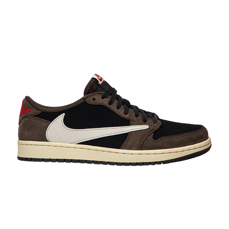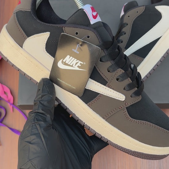 Iconic Travis Scott low-top featuring rich mocha brown suede, black overlays, and cream accents. A bold streetwear essential with signature reverse swoosh styling and everyday comfort—perfect for standout casual fits.